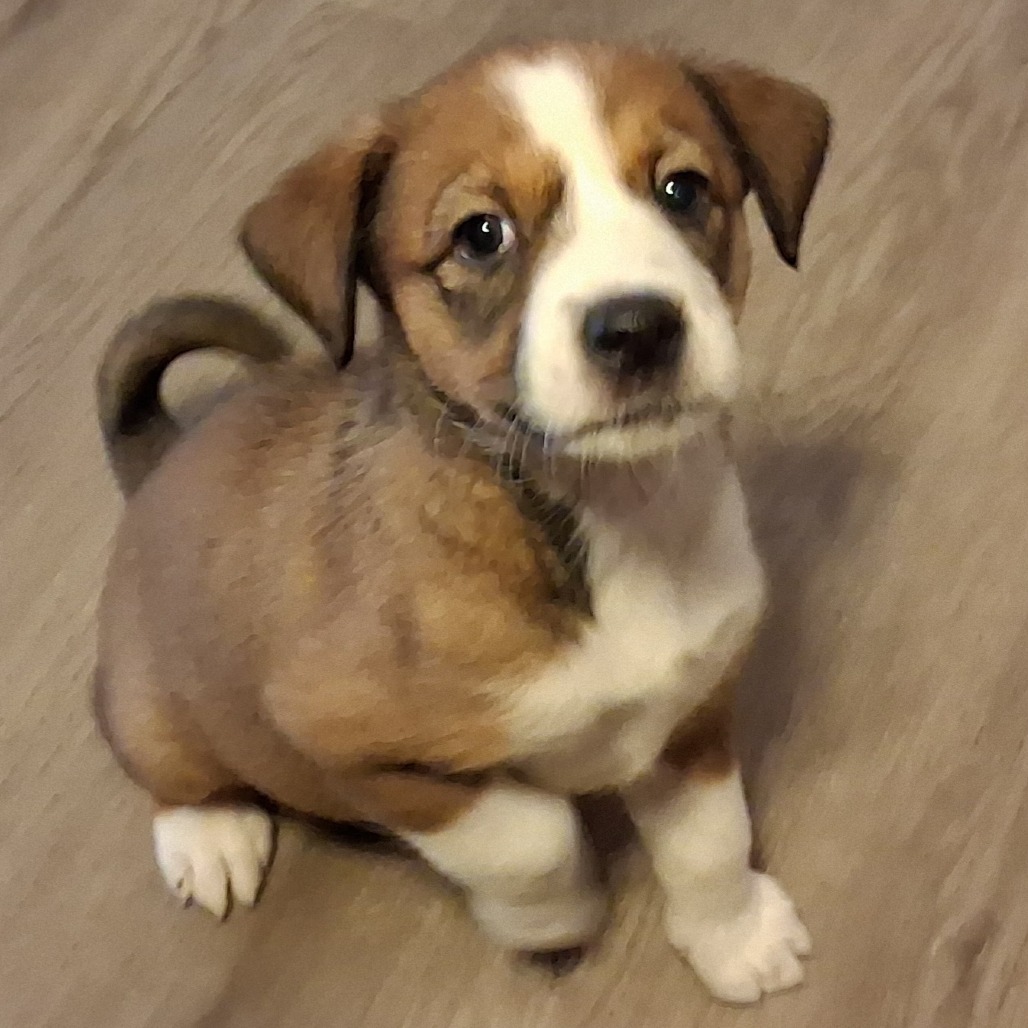 I will most likely be a medium sized dog, with medium length hair as I am a little furry right now. I love to play with my sibling B.B., and love the other dogs in my foster mom’s house. But I really love it when we can play with the people in the house. They give us toys and all sorts of things to play with and we love to play chase with the chihuahua who lives here too. Life is very fun right now!
