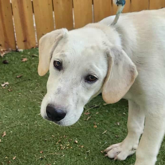 Bo is a 4-month-old Lab/Great Pyrenees mix — or at least that’s our best guess based on his adorable looks and gentle personality! Since he was found as a stray, we can’t guarantee his breed, but we can guarantee he’s going to be a big, lovable boy with a heart to match. 💕