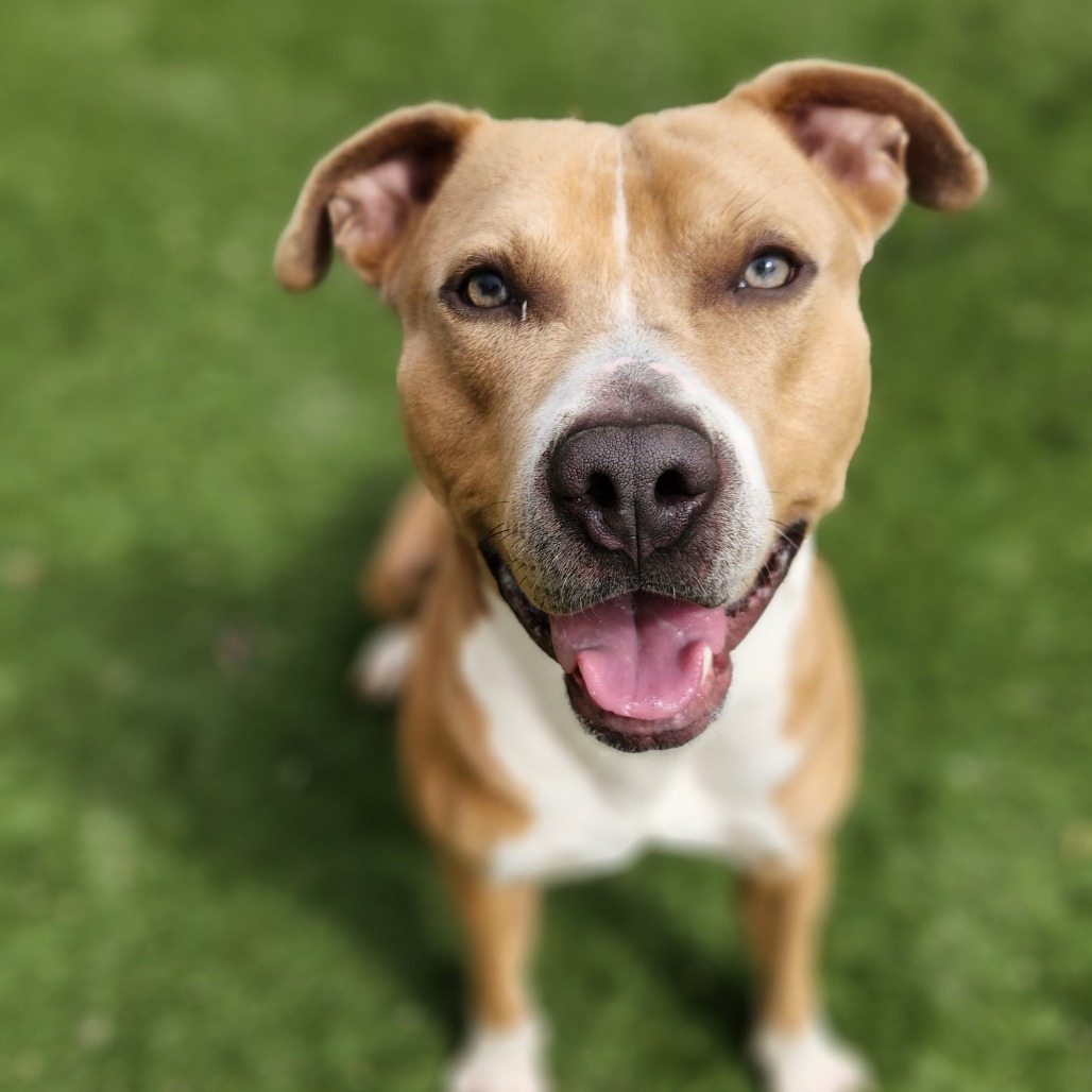 Now safe and thriving, Chief is a strong, happy boy who’s full of life and love. He’s got a big personality and doesn’t quite realize how strong he is, so a home with older kids would be best (unless your toddlers like to be playfully bowled over). He absolutely LOVES stuffed toys—he’ll sit oh-so-politely to get one… and then joyfully destroy it in under five minutes. Rinse and repeat. It’s his favorite sport!
