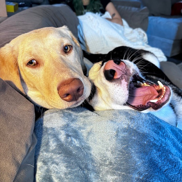 His favorite hobbies include playtime with his doggy bestie, chewing on toys and bones like it’s a professional sport, and playing on top of literally anything—beds, couches, toys, and yes… humans. When playtime ends and recharge mode begins, he’ll either dramatically plop himself directly on you or use you as a shield to hide behind. Advanced tactics. Very effective.