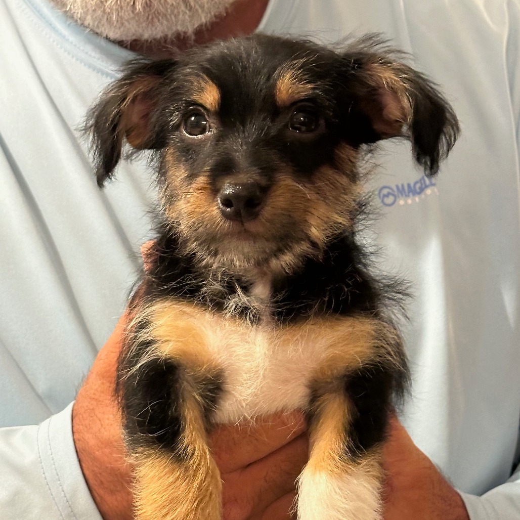 Cooper is a 3-month-old terrier mix with a big heart and an even bigger personality. As the largest pup in his litter, he proudly holds the title of “big boy,” and he fully lives up to it with his goofy charm and lovable nature. Cooper is a total sweetheart who doesn’t realize his own size and just wants to be close to his people.