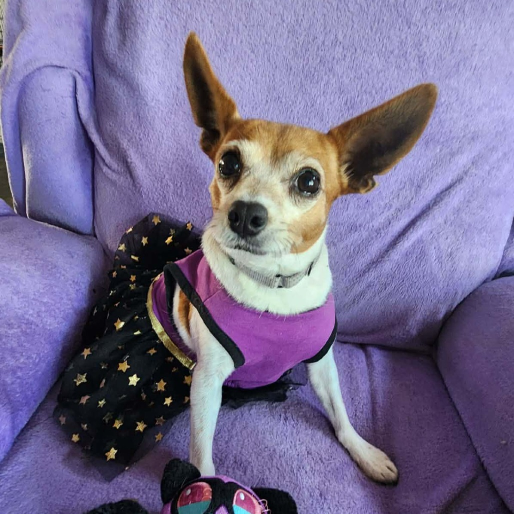 Ellie has the sweetest soul. She came into GDR alongside two puppies who weren’t even hers — and loved them anyway. That pretty much tells you everything you need to know about her heart. This SUPER sweet, submissive girl lives for belly rubs and being close to her person. She’s a total Velcro doggy to the max — if you’re sitting, she’s sitting with you. If you’re sleeping, she’d love to be cuddled up right beside you in bed. Your shadow? That’s Ellie. She’s crate trained, potty trained, and leash trained, making her an easy addition to the home. Ellie enjoys playtime too and wouldn’t mind a dog friend her size, especially one who is also submissive and gentle like she is. If you’re looking for a loyal, loving companion who will adore you with her whole heart, Ellie is ready to be your constant cuddle buddy.