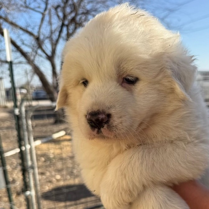 Great Pyrenees are a livestock guardian breed known for being loyal, intelligent, and naturally protective. Goose will likely develop these traits as he matures. Because of this, he will do best in a home that is familiar with or willing to learn about the needs of guardian breeds.