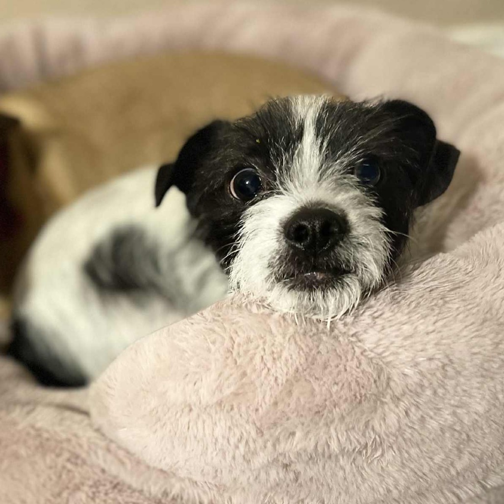 Max is a one-year-old schnauzer/terrier mix weighing about 9 pounds, and he’s as sweet as they come! This little guy has never met a stranger — he’s friendly with everyone he meets and just wants to be your best friend. Max loves attention, cuddles, and playtime in equal measure.