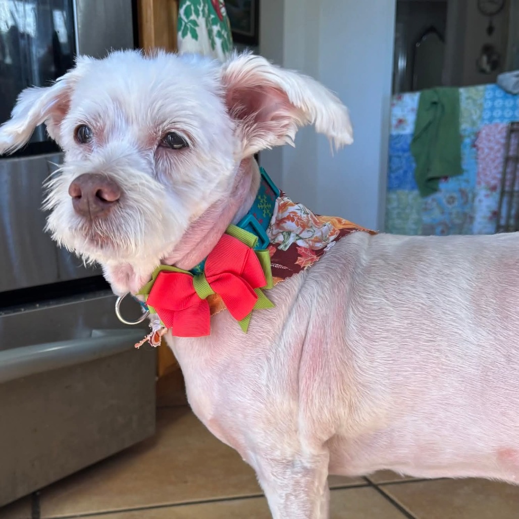 Popcorn is about 18 lbs., 15 years old and according to Google lens, a West highland terrier. Animal Care Services thought he was a Maltese mix and foster mom thinks he could be a Schnauzer/Maltese mix but knows for sure that he is the cutest scruffy EVER! His journey hasn't been all snuggles and treats as he lived on someone's apartment patio for years, lying in poop, grass and other debris until Animal Care Services came for him and God's Dogs Rescue was able to save the little scamp.