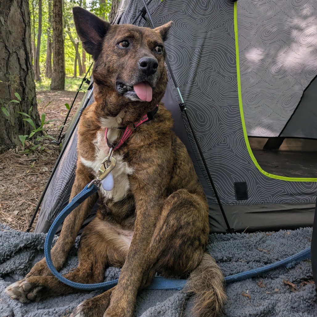 My life wasn't always so sweet, a rescue lady found me sitting in a ditch out in the country. My pelvis was broken and x rays showed that I have some bbs in my hind quarters too! My pelvis is still healing, so I can't go on long hikes or runs. That's fine though, because you can grab a latte, and a blanket and we can SNUGGLE UP. I immediately brought out my sweet side and was happy to sit in her car and start my journey to forever! All of my teeth were broken as well, so I only kept my top canines and my molars, but that doesn't slow me down AT ALL. I love snackies, I just drool a little extra and my tongue is a little floppier than you might expect.