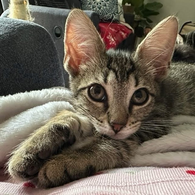 Sweet, snuggly, and endlessly playful. Mr. Big is the perfect mix of cuddles and curiosity — he’ll happily curl up in your lap for a snuggle, then switch into play mode chasing toy wands and showing off his acrobatic leaps. He’s affectionate and loves gentle scratching and soft purring sessions. He also likes to "make biscuits" (knead) before settling in for a nap. He is good with adults, kids who know how to handle cats gently, and other friendly, social cats. He is seeking a loving home with regular playtime, cozy spots to nap, and a few interactive toys and climbing spaces (feather wands, crinkly toys, and tunnels are his favorites). He thrives with short play sessions and soft, calming voices. His ideal adopter is someone who wants an affectionate companion who brings both energy and calm — perfect for families, singles, or couples who enjoy both lap time and playful antics.