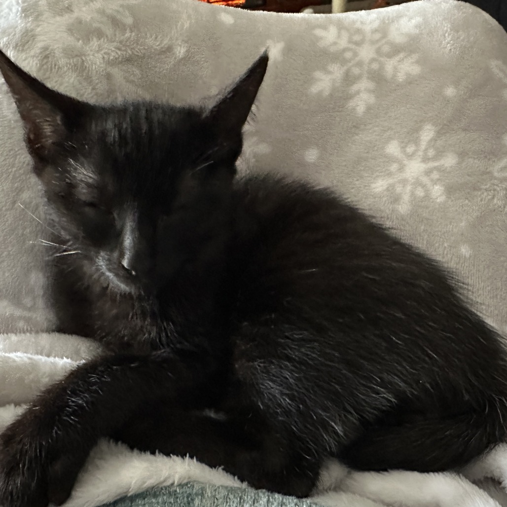 Playful and affectionate with a gentle heart. He loves cozy cuddles but also has bursts of energetic play — one minute he’s curled up purring in your lap, the next he’s leaping after a toy. He’s calm, enjoys soft petting, and often kneads a comfy blanket before drifting off. He is good with adults, patient children who respect pets, and other friendly cats. He is looking for a home with daily engagement — brief play sessions, several comfy resting spots, and vertical space or toys to explore (feather wands, crinkle toys, and tunnels are top picks). His ideal adopter is someone who wants a loving, fun companion — someone who appreciates both mellow lap time and spirited play.